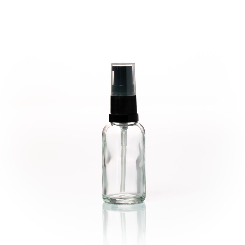 Euro 30ml Clear Glass Bottle with Black Serum Pump Spray