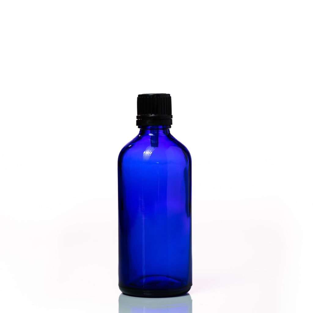 100ml Blue Glass Bottle with Orifice Reducer and Black Cap