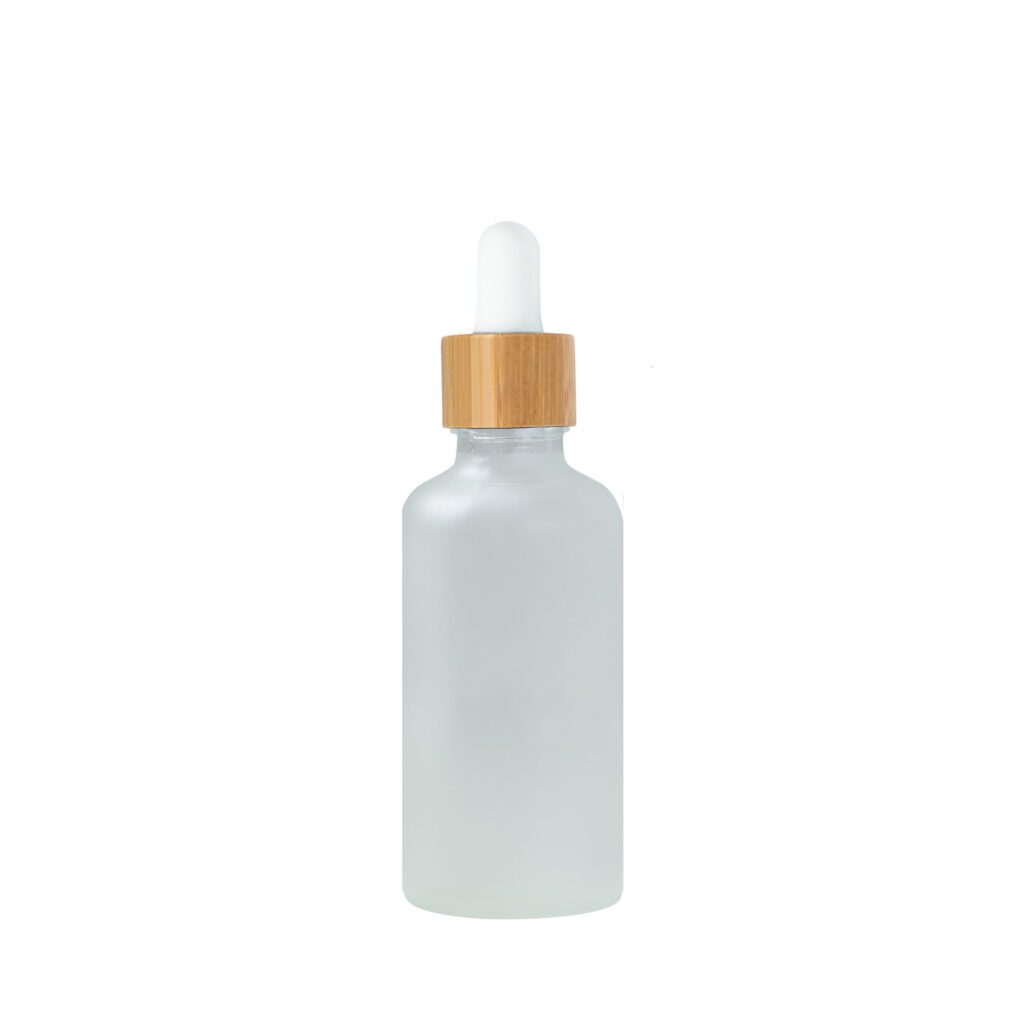 Euro 50ml Frosted Glass Bottle with Bamboo Dropper/White Rubber