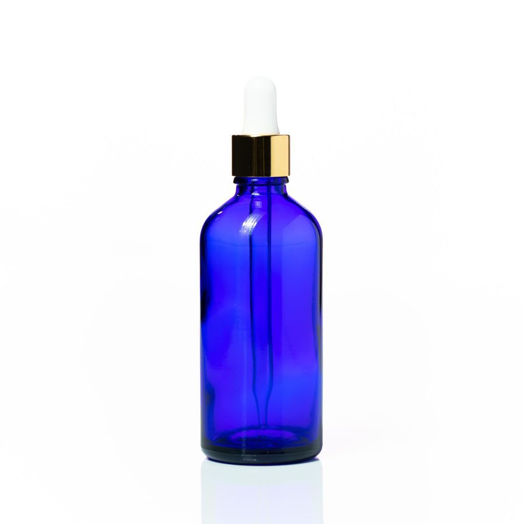 Euro 100ml Blue Glass Bottle with Gold Dropper