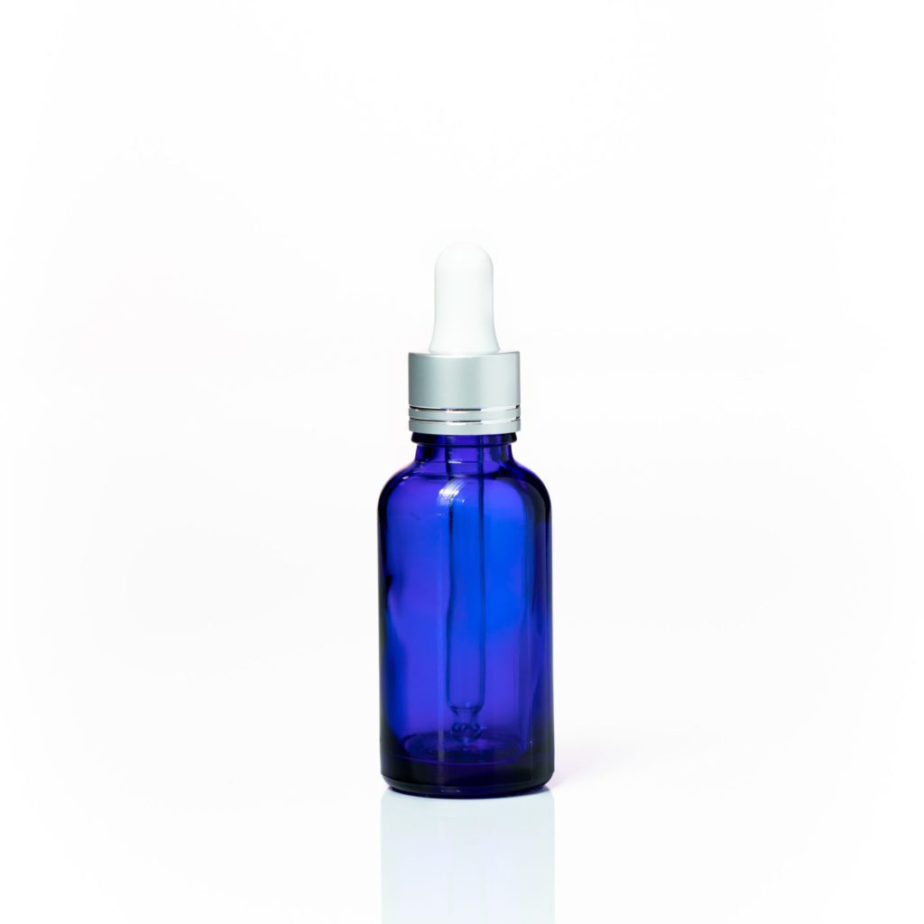 Euro 30ml Blue Glass with Silver Dropper Cap