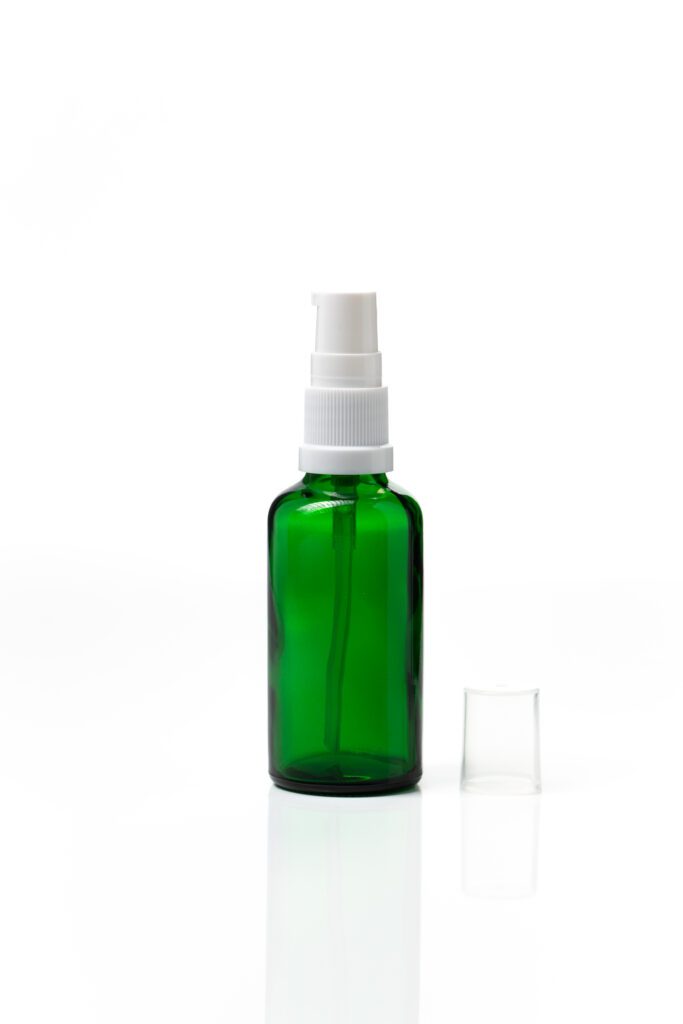 Euro 50ml Green Bottle with White Serum Pump Spray