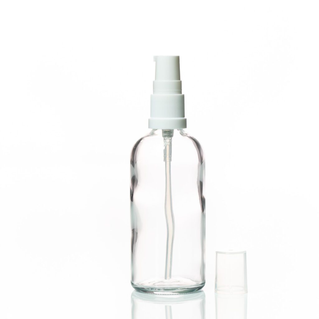 Euro 100ml Clear Bottle with White Serum Pump Spray