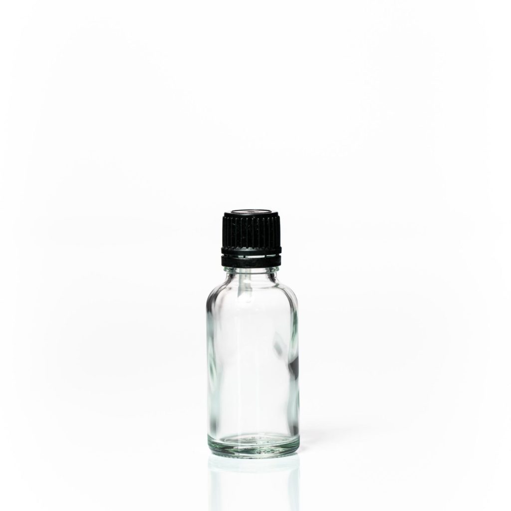 Euro 30ml Clear Bottle with Orifice Reducer and Black Cap